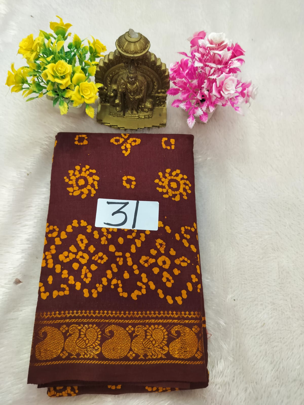 100% நுல்லிய மற்றும் மென்மையான வாக்ஸ் காட்டன் துணியில் தயாரிக்கப்பட்டது. வாக்ஸ் பூச்சுடன் கலைநயமாக வடிவமைக்கப்பட்ட இந்த சாரீ, அழகான பளிச்செனும் தோற்றத்தைக் கொடுத்து பாரம்பரியத்தையும் நவீனத்தையும் ஒருங்கிணைக்கிறது. அணிய எளிதாகவும், பராமரிக்க வசதியாகவும் இருப்பதால், இது விழாக்கள், குடும்ப நிகழ்வுகள் மற்றும் அலுவலக பயன்பாட்டிற்கு மிகவும் ஏற்றது. பல வண்ணங்கள் மற்றும் நவீன வடிவமைப்புகளில் கிடைக்கும் இந்த சாரீ, உங்கள் ஆடையில் தனித்துவம் கொடுக்கும்.
